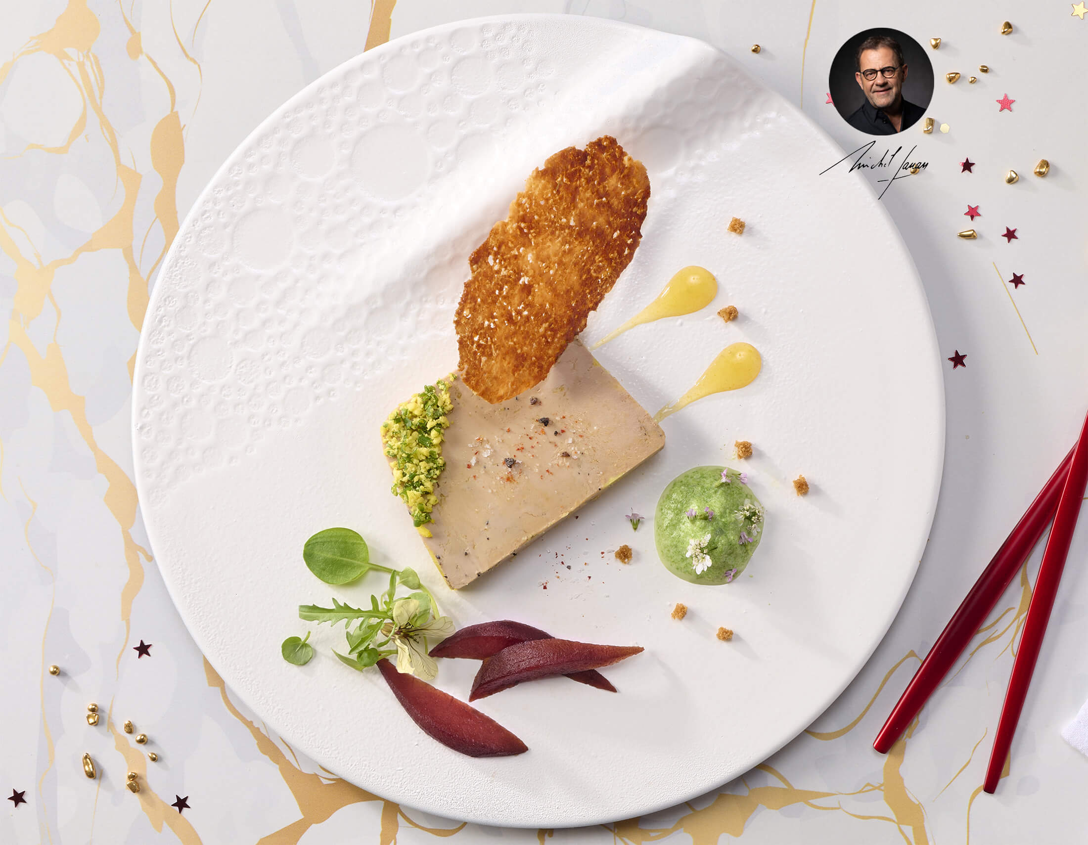 Il ne vous reste plus qu’à saupoudrer l’assiette de brunoise de pain d’épices.
