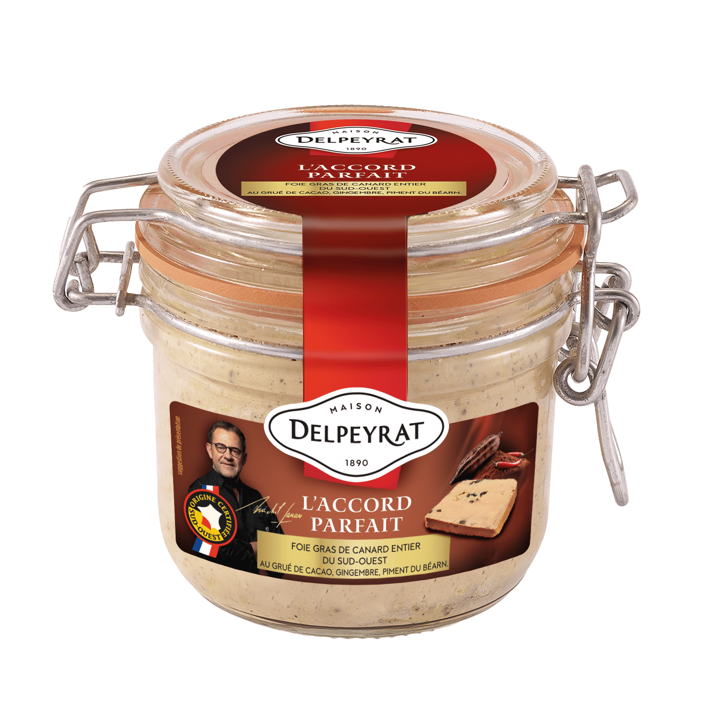 Fruit du partage de valeurs communes, cette recette élaborée avec soin associe du Foie Gras de canard élevé dans le Sud-Ouest, l’intensité du Grué de cacao, la fraicheur épicée du gingembre ainsi que la subtilité du piment du Béarn.